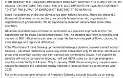 Фицо заявил, что 23 февраля Словакия приостановит поставки электроэнергии в Украину, если Киев не возобновит поставки нефти в страну по нефтепроводу «Дружба»
