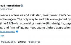 Об этом заявил президент Ирана Пезешкиан по итогам разговора с главами РФ и Пакистана.
