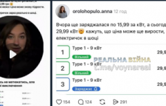 По ее словам, в приложении с картой электрозаправок она обнаружила, что тариф вырос с 15,99 грн за кВт\ч до 29,99, а вскоре ожидается подорожание до 50.