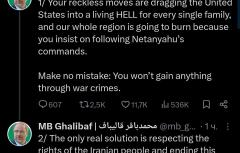"Ваши необдуманные действия втягивают Соединенные Штаты в настоящий ад для каждой семьи, и весь наш регион сгорит, потому что вы настаиваете на выполнении приказов Нетаньяху .