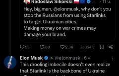 Сикорский публично обратился к Маску с призывом ограничить использование Starlink Россией, которая начала управлять с помощью этой связи своими дронами над Украиной.