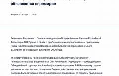 Путин объявил пасхальное перемирие