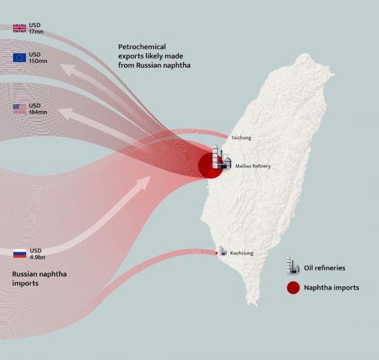 Однако частный сектор пошел противоположным путем. Компания «Formosa Petrochemical Corporation» (FPCC) увеличила свою зависимость от российской нефти с 9% до полномасштабного вторжения до 90% в первой половине 2025 года.