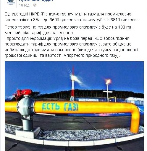 И просто для информации: Правительство не брало перед МВФ обязательства пересматривать тариф для промышленных потребителей, зато обещало это делать по тарифам для населения (исходя из курса национальной денежной единицы и стоимости импортного природного газа)" - говорися в сообщении.
