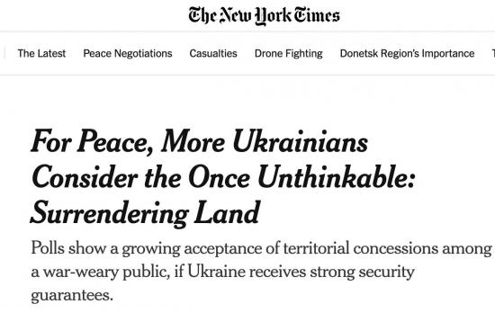 The New York Times заявляет, что ради мира всё больше украинцев готовы согласится на передачу России всего Донбасса