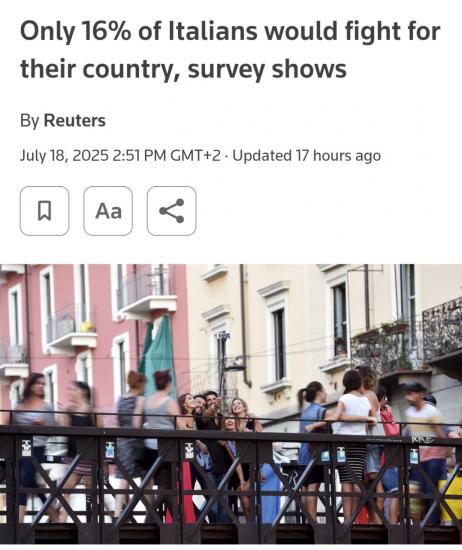 Однако, согласно опросу, проведенному Европейским советом по международным отношениям, лишь 17% граждан Италии выступают за увеличение оборонных расходов.