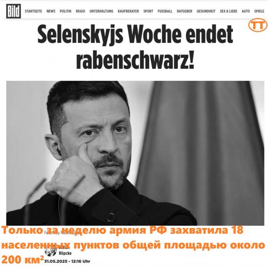 Bild пишет, что события на фронте разворачиваются с преимуществом для россиян на фоне того, что в Берлине Владимир Зеленский получил «ледяной отпор» от канцлера Мерца по вопросу поставок «Таурусов».