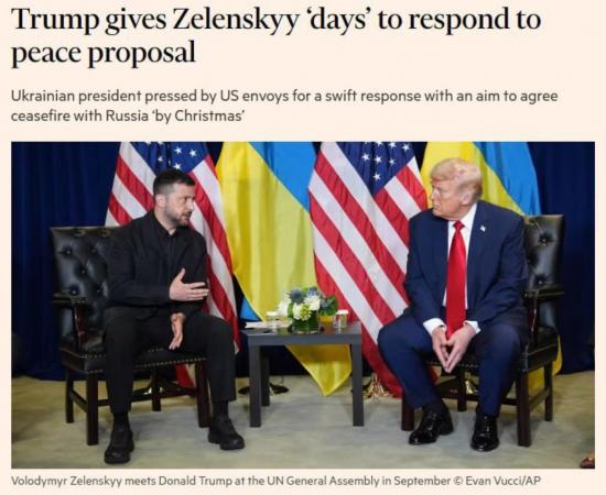 Трамп дал Зеленскому «дни» для ответа на мирный план США, - Financial Times