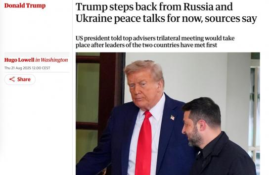 "Нежелание Трампа подталкивать Путина и Зеленского к встрече связано с тем, что в последние дни он признал, что прекращение войны в Украине оказалось сложнее, чем он предполагал", - пишет Guardian.