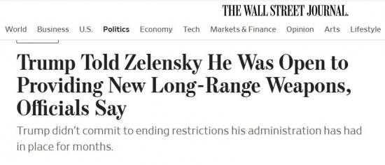 По словам высокопоставленных американского и украинского чиновников, президент Трамп ранее сообщил Зеленскому, что он открыт для снятия ограничений на использование Украиной американского оружия большой дальности для нанесения ударов по территории России.