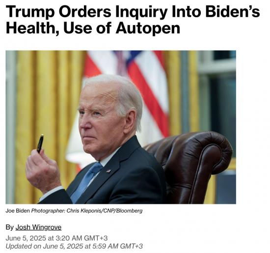 Президент США поручил расследовать, вступали ли сотрудники администрации Байдена в сговор с целью сокрытия информации о его здоровье от общественности и принимали ли они какие-либо исполнительные меры без ведома президента, используя автоподпись.