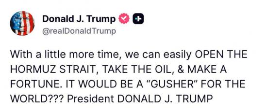 «Если дать нам немного больше времени, мы легко сможем открыть ормузский пролив, забрать нефть и заработать состояние.