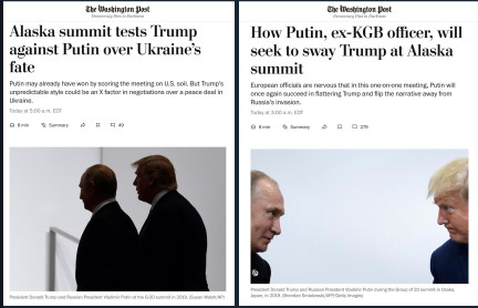 Само WP так описывает встречу: "В одном кресле будет сидеть американский лидер, чей импровизированный подход часто оставляет детали на усмотрение других. В другом кресле будет сидеть Путин, бывший разведчик, который, по словам официальных лиц, обладает энциклопедическими знаниями поля боя и тщательно продуманной стратегией, позволяющей вывести из равновесия коллег-лидеров".