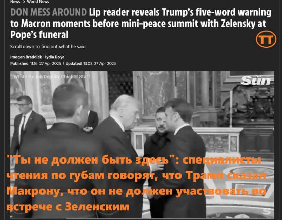 "Ты не должен быть здесь": специалисты чтения по губам говорят, что Трамп сказал Макрону, что он не должен участвовать во встрече с Зеленским