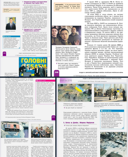 В этих учебниках несколько глав посвящены событиям последних лет, включая президентство Зеленского и полномасштабное вторжение Российской Федерации.