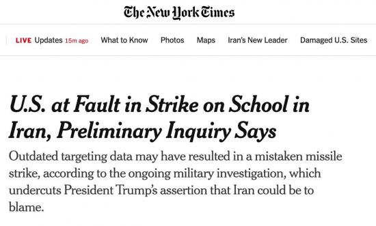 По их данным, удар 28 февраля был результатом ошибки в определении цели со стороны американских военных, которые наносили удары по соседней иранской базе, частью которой ранее было здание школы.