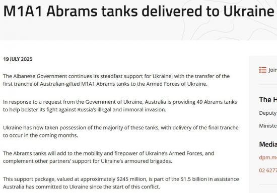 "Этот пакет помощи на примерно 245 миллионов австралийских долларов является частью помощи в размере 1,5 миллиарда австралийских долларов, которую страна выделила с начала полномасштабной войны", - говорится в сообщении.