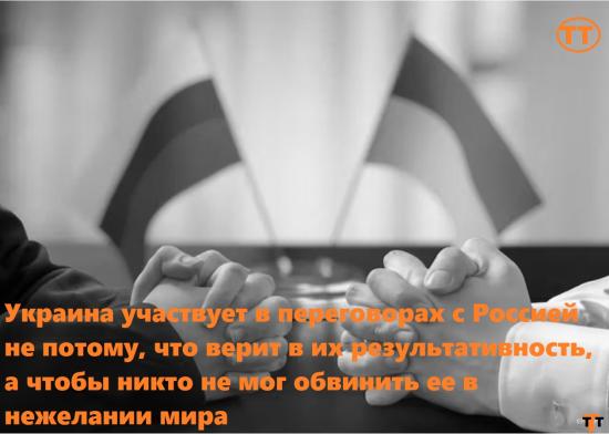 Украина участвует в переговорах с Россией не потому, что верит в их результативность, а чтобы никто не мог обвинить ее в нежелании мира