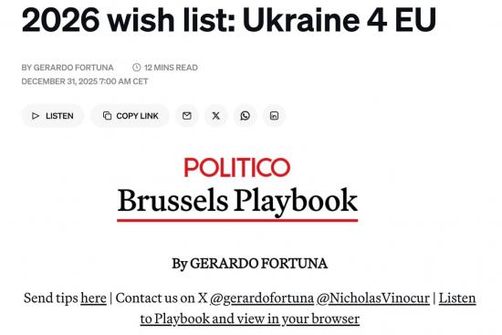"Закрепление членства в ЕС в мирном плане может оказаться единственным политически жизнеспособным способом сдвинуть этот вопрос с мёртвой точки в 2026 году — тем самым превращая его, в определённом смысле, в самое стратегическое новогоднее решение Брюсселя", - пишет Politico.