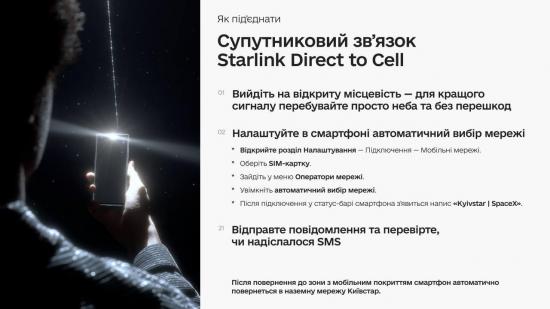 Пока услуга Starlink Direct to Cell работает в тестовом режиме только для абонентов Киевстар, использующих смартфоны на Android.
