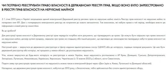 Украинцы, которые до 2013 года получили право собственности на недвижимость, должны самостоятельно перерегистрировать его в новом госреестре