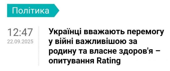 Абсолютное большинство украинцев (62%) считают победу в войне самым важным в жизни, тогда как семью и близких назвали 53%.
