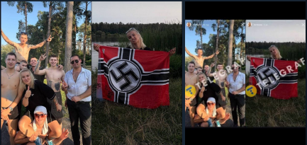 Украинские СМИ публикуют скриншоты из инстаграма Анастасии Мирзак, сотрудницу Святошинского суда, на котором она отдыхает в компании молодых людей и держит в руках флаг нацистской Германии со свастикой