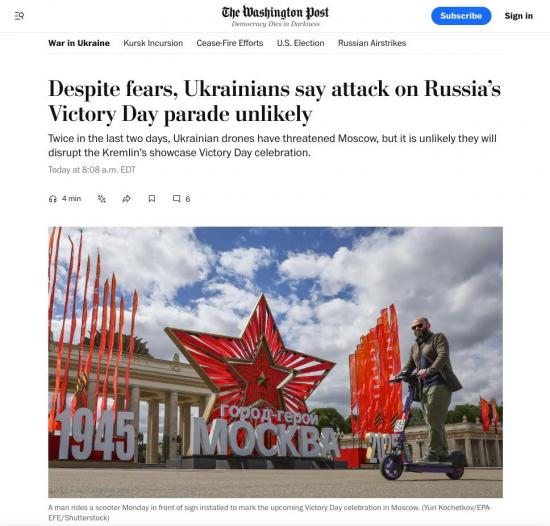 Украинский удар по Москве на 9 мая может разозлить Вашингтон, разговоры о возможной атаке - "шумиха", - The Washington Post со ссылкой на источник в Минобороны Украины