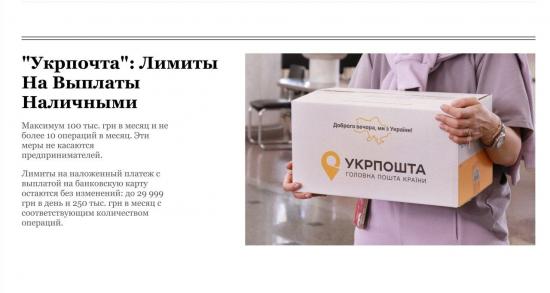 С сегодняшнего дня физические лица смогут отправлять не более 10 посылок с наложенным платежом в месяц на общую сумму до 100 тысяч гривен.