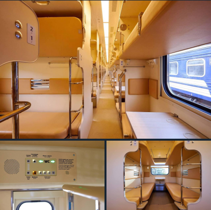 Каждый рассчитан на 58 мест, с обновлённым дизайном и улучшениями: мягкие боковые спинки, ниши для багажа, перегородки для приватности, розетки, USB-порты, индивидуальное освещение и современная вентиляция.