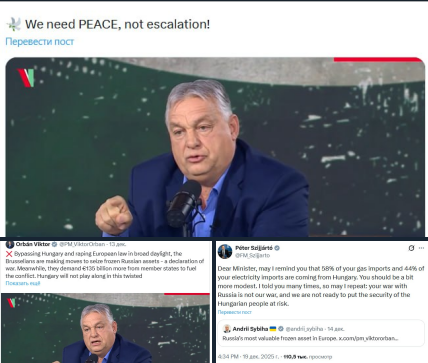 Тем временем они требуют еще 135 миллиардов евро от государств-членов для разжигания конфликта. Венгрия не собирается участвовать в этой извращенной брюссельской схеме. Нам нужен мир, а не эскалация!», – написал в воскресенье (еще до провала идеи репарационного кредита) венгерский премьер Орбан.