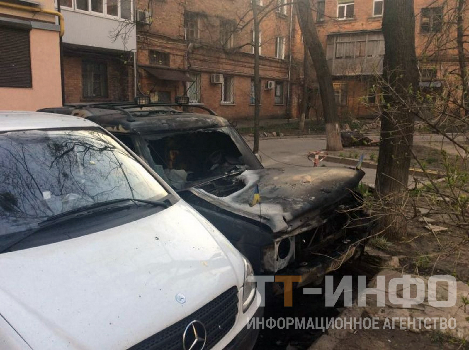 В центре Харькова в ночь на 14 апреля сожгли автомобиль, якобы принадлежащий волонтерам, с номером ПТН-ПНХ.