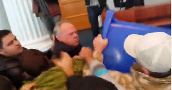 Инцидент произошел 25 сентября на заседании облсовета. Представители «координационного совета сил Майдана» явились туда с мусорными баками, требуя люстрации. При этом они заблокировали трибуну.