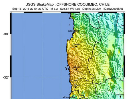Первое землетрясение, магнитуда которого изначально была оценена в 7,9, а затем увеличена до 8,3, произошло в 232 км к юго-западу от столицы страны Сантьяго. Жертвами стихии стали уже пять человек.