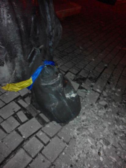 Памятник Ленину в Доброполье был снесен с постамента неизвестными в ночь с 10 на 11 марта
