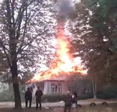 В Донецке начались возгорания вследствие попадания снарядов в районе поселка шахты "Октябрьский рудник".