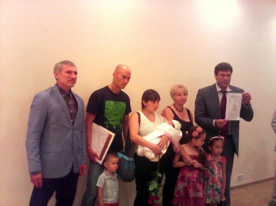 Сегодня в Киевском ЗАГСе Донецка мы с Алексеем Журавлевым вручили свидетельство о рождении гражданки Донецкой Народной Республики. Девочка Амира - пятый ребенок в семье Александра Яковенко из Славянска. Им пришлось переехать в Иловайск, подальше от войны. Семья получила подарки, денежную помощь. Если в такое сложное время рождаются дети, значит у республики есть будущее."