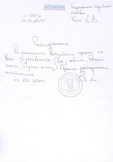 16 июня пресс-служба Горловского горсовета распространила требование мэра к руководителям предприятий Горловки, в котором указывается, что до конца сегодняшнего дня на зданиях всех предприятий и учреждений необходимо вывесить российские флаги.
