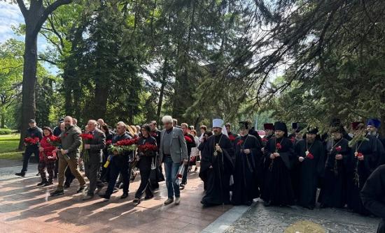 В Харькове представители власти, общественности и духовенства возложили цветы к Мемориалу Славы в Лесопарке