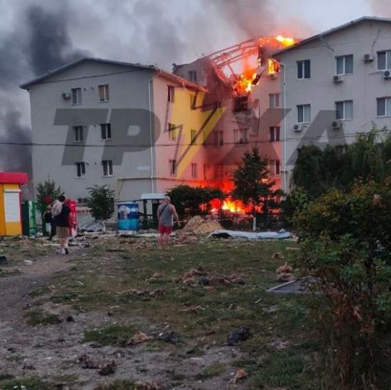 В результате удара вспыхнули квартиры на нескольких этажах и автомобили.