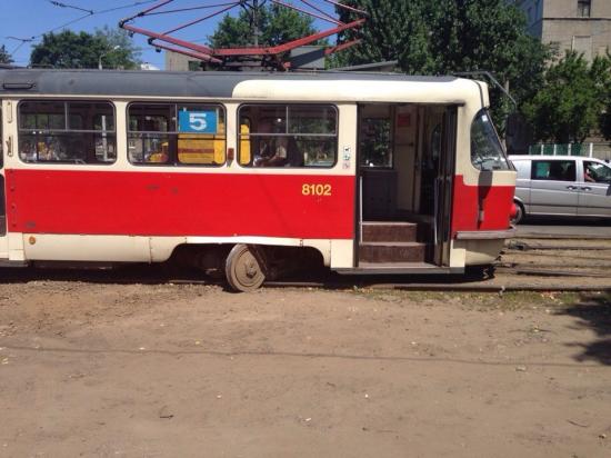 Сегодня в Харькове произошел очередной инцидент с трамваем. На этот раз сошел с рельсов трамвай маршрута №5.