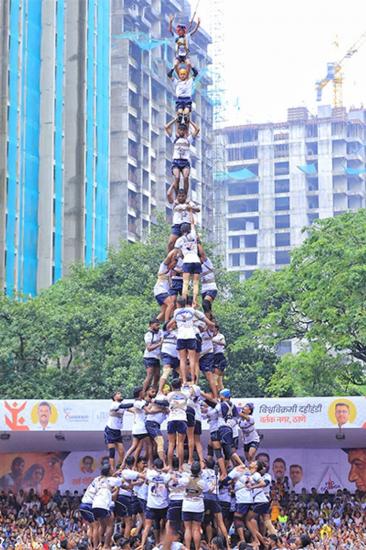 Пирамиду образовали в городе Тане штата Махараштра во время празднования индуистского фестиваля Дахи Ханди, когда отмечается рождение Кришны