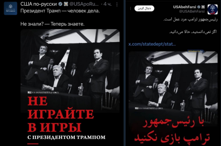 В иноязычных аккаунтах Госдепартамента США в X появился пост на разных языках «Не играйте в игры с президентом Трампом»