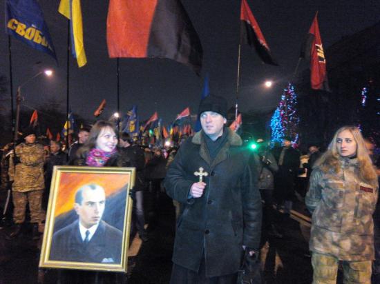 В центре украинской столицы "Правый сектор" и националистическая партия "Свобода" провели факельное шествие. Поводом стал день рождения лидера Организации украинских националистов (ОУН) Степана Бандеры, которому сегодня исполнилось бы 106 лет.