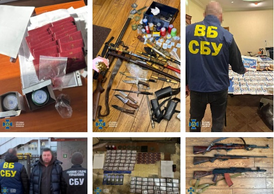 Во время обысков в домах и офисах фигурантов изъяты смартфоны, компьютерная техника, поддельные штампы и печати госучреждений и боевые средства поражения. Кроме того, у злоумышленников изъято около ста «удостоверений» СБУ, других военизированных и правоохранительных формирований, а также фиктивные приказы, справки и пророссийские агитационные листовки.