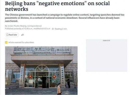Китайское правительство запустило кампанию по регулированию онлайн-контента. Она нацелена на высказывания, признанные слишком пессимистичными или раскалывающими общество.