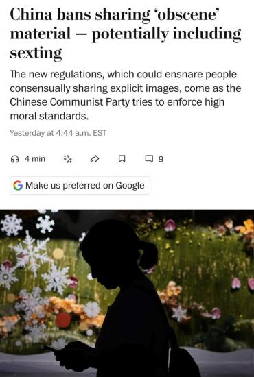 В Китае с 1 января запретят весь порноконтент, даже в личных чатах
