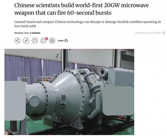 В Китае создали первое в мире микроволновое оружие, способное нарушить работу спутников на низкой околоземной орбите, в том числе Starlink