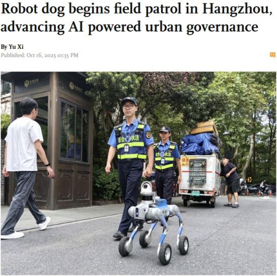 В китайском городе Ханчжоу вместе с полицией патрулировать улицы вышли робопсы, - Global Times