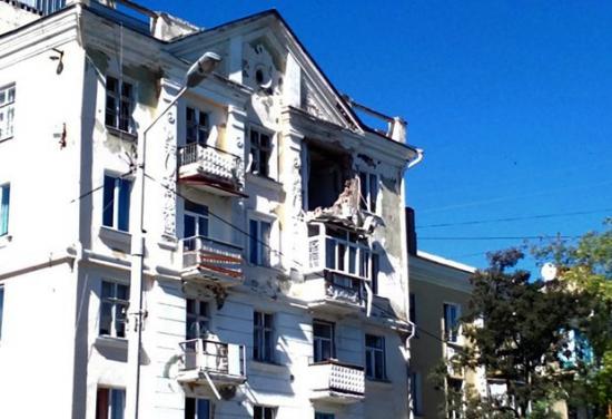 Сильнее всего пострадала одна из квартир в доме №7 по улице Богдана Хмельницкого. Попавший в него снаряд вырвал оконный блок, отбросив его далеко вглубь двора. Вся квартира усыпана обломками мебели и кусками бетона. Разрушен пол.